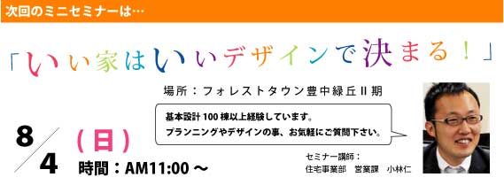 ■今週末もミニセミナーを開催します!【豊中市・新築一戸建て・土地・自由設計・北緑丘小学校・第十四中学校・校区・鶴見緑地・門真市・守口市・枚方市】