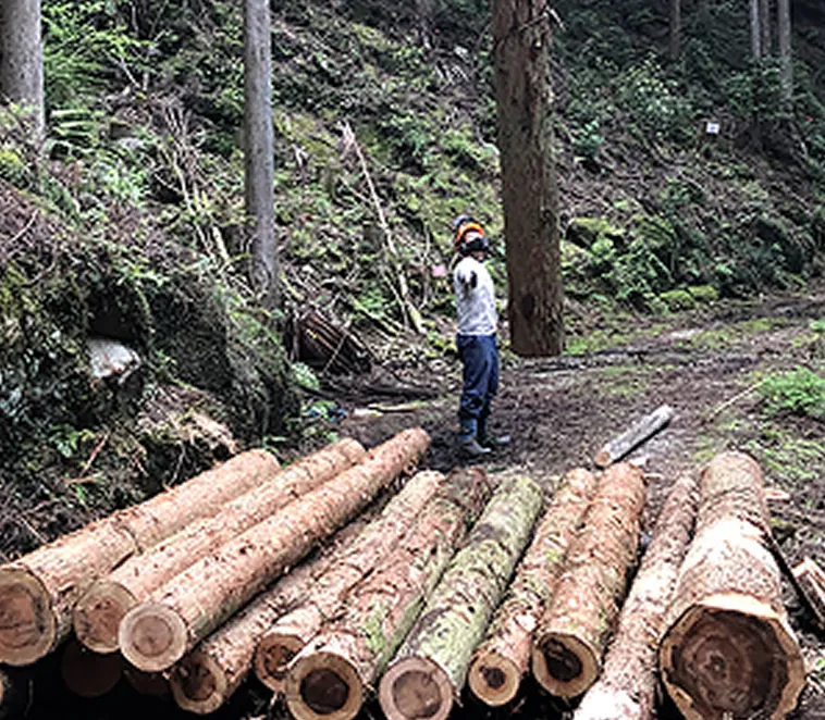 そんな想いから、2021年より自社山林の間伐材を100%使用した自社フローリング材、構造用集成材の生産に向けた取り組みを始めました。