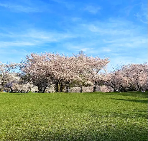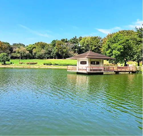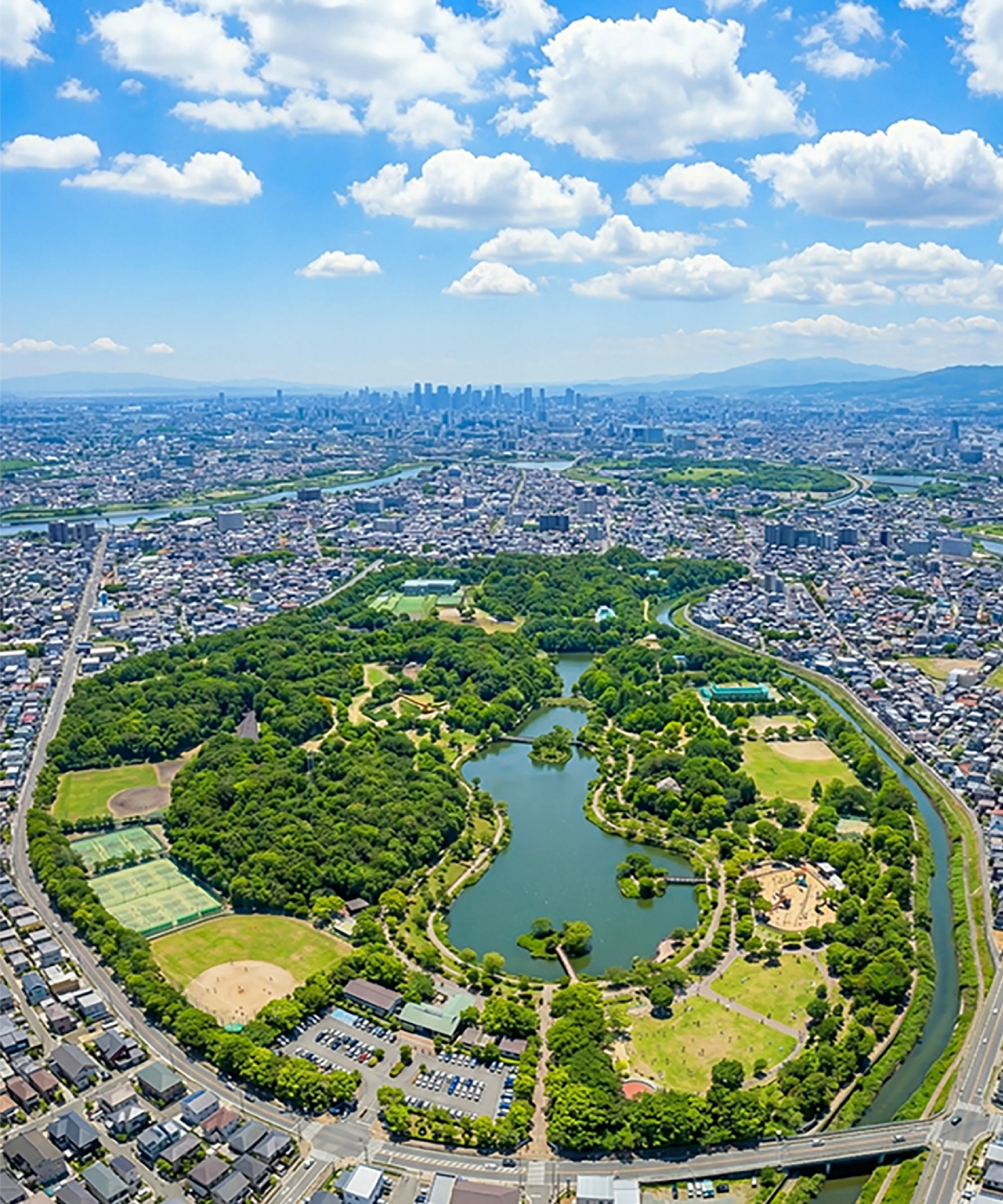 堺市の北側でたくさんの家族やカップルが穏やかな時間を過ごす